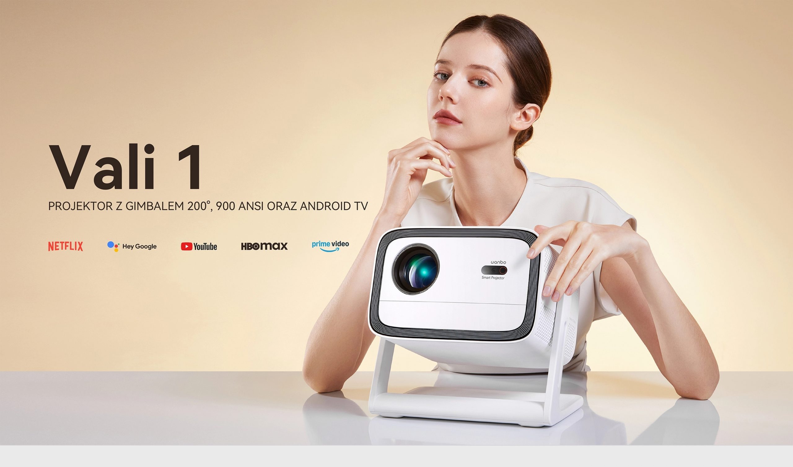 Wanbo Vali 1 Biały | Projektor | Full HD, 900 ANSI, Android TV 11, Gimbal